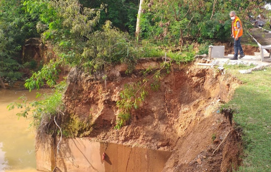 “Há uma galeria embaixo e, com a correnteza do rio, está provocando a erosão da pista adentrando na calçada. O meio-fio já foi invadido e deve atingir a pista. O local ficará interditado pois há risco de desabamento da pista de rolamento”, afirmou o gerente de operações da SEMDEF, Marcos Rolf.