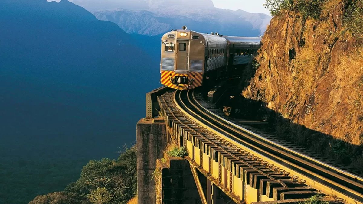 A viagem pela Estrada de Ferro Curitiba-Paranaguá, inaugurada em 1885, percorre 110 km da Serra do Mar e é um marco da engenharia nacional, projetado pelos irmãos André e Antônio Rebouças. Primeira ferrovia construída sem mão de obra escravizada, ela cruza mais de 40 pontes e 13 túneis. Destaques incluem a Ponte São João, de 112 metros, montada com rebites belgas, e o Viaduto do Carvalho, que dá a sensação de flutuar sobre o penhasco.