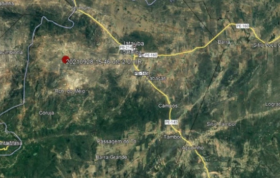 Um tremor de terra foi registrado em Jataúba e Santa Cruz do Capibaribe, no Agreste de Pernambuco. O registro foi feito na tarde da terça-feira (28).