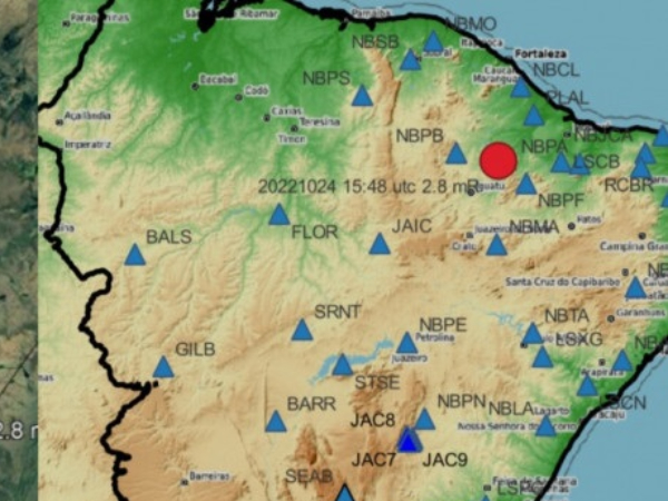Um tremor de terra com magnitude preliminar de 2.8mR foi registrado na região do município de Jaguaretama, no estado do Ceará, na segunda-feira (24), atingindo pelo menos, três municípios (Jaguaretama, Jaguaribe e Solonópole). As informações são do Laboratório Sismológico da Universidade Federal do Rio Grande do Norte (UFRN).