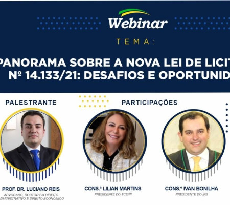o Webinar “Panorama sobre a Nova Lei de Licitações nº 14.133/21: Desafios e Oportunidades será integralmente online, gratuito e com certificação ao final, para todos os participantes inscritos. Mais informações podem ser obtidas diretamente com a EGC, pelo telefone (86) 3215-3927.vai falar sobre o tema é o Prof. Dr. Luciano Reis, que é advogado e doutor em Direito Administrativo e Direito Econômico