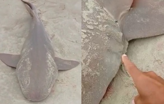 Tubarão lixa é encontrado por pescadores na Praia Pedra do Sal; vídeo!