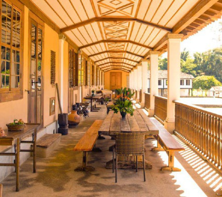 CASARÃO - Em Itapira (SP), por sua vez, a Fazenda Águas Claras, datada de 1870 e que serviu de lar para imigrantes italianos que vieram trabalhar com a produção de café na época, proporciona ao visitante vivenciar a fabricação do produto, além de se hospedar em acomodações de estilo colonial e aproveitar várias opções de lazer. No local, adaptado ao turismo rural, a antiga Casa Sede foi cuidadosamente restaurada, preservando as características originais. A rusticidade das madeiras nobres aparentes e os altos-relevos das portas e janelas transmitem a sensação de estar em um casarão histórico.
