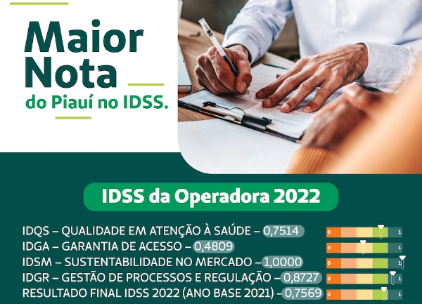 A Unimed Teresina conquistou, pelo segundo ano consecutivo, a maior nota do Piauí no Índice de Desempenho da Saúde Suplementar (IDSS), ano-base 2021. A cooperativa de plano de saúde ficou com o melhor resultado entre os planos de saúde registrados no estado, 0,7569, onde 1,0 é a nota máxima.