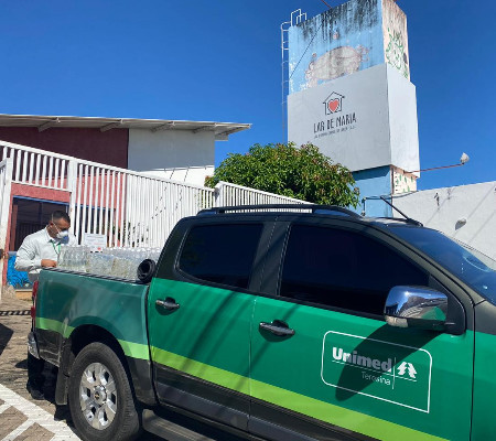 O Sistema Unimed Teresina fez a doação hoje, 23 de junho, de fardos de água para o Lar de Maria. A ação foi resultado de uma parceria entre a Unimed Teresina e Água Viena, que patrocinaram a Live Solidária "Sextou em Casa", com apresentação de artistas locais.