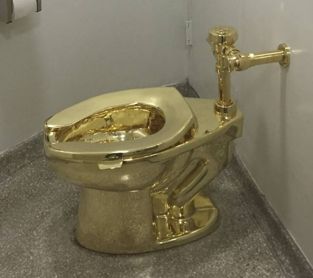 Segundo relatos da polícia à imprensa, o assalto causou danos e alagamentos graves ao lugar, já que a privada estava ligada ao encanamento do palácio. Anteriormente exposta no Museu Guggenheim, em Nova York, a obra ganhou fama em 2018, quando o presidente Donald Trump solicitou à instituição uma pintura de Van Gogh para decorar a Casa Branca. Em resposta, a diretora do museu não só negou o pedido como ofereceu, no lugar de um quadro do artista holandês, o tal vaso sanitário em ouro maciço.