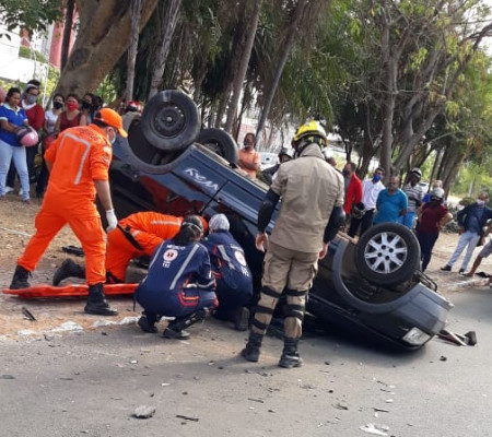 “O Fiat Uno estava na rotatória quando na saída acabou sendo colhido pelo Voyage, causando o capotamento”, afirmou uma testemunha.