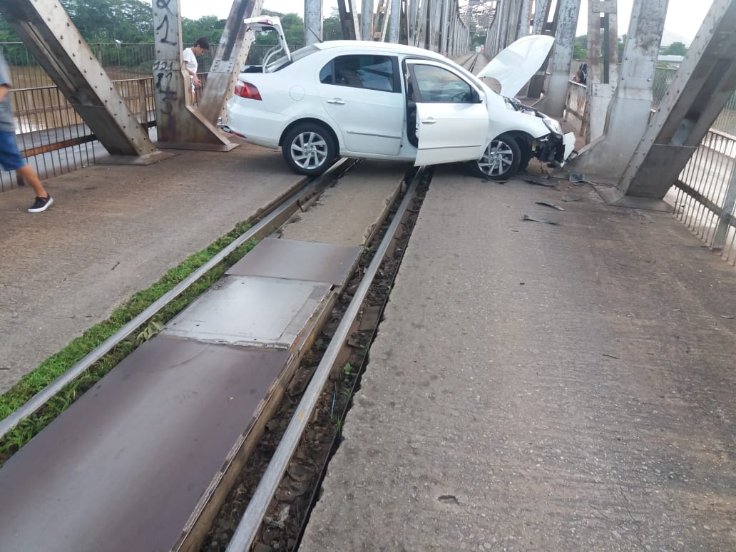 Na manhã desta quinta-feira (27/02), um acidente foi registrado em cima da Ponte Metálica, entre Teresina e Timon. De acordo com informações, um veículo modelo Voyage, estava passando por cima da ponte, quando em um determinado momento ainda desconhecido, o motorista perdeu o controle e o carro colidiu em uma das estruturas da ponte.