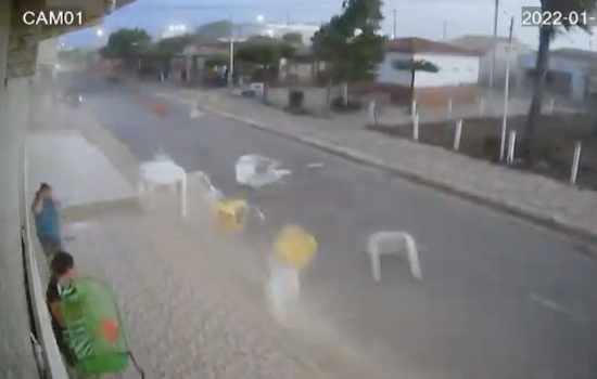Moradores do município de Lagoa Grande, no Sertão de Pernambuco, foram surpreendidos com uma ventania no início da noite da terça-feira (18). Uma câmera de segurança instalada de frente para BR-428 registrou o momento em que a rajada de vento levantou muita poeira e arrastou mesas e cadeiras plásticas pela rodovia. As informações são do g1/PE.