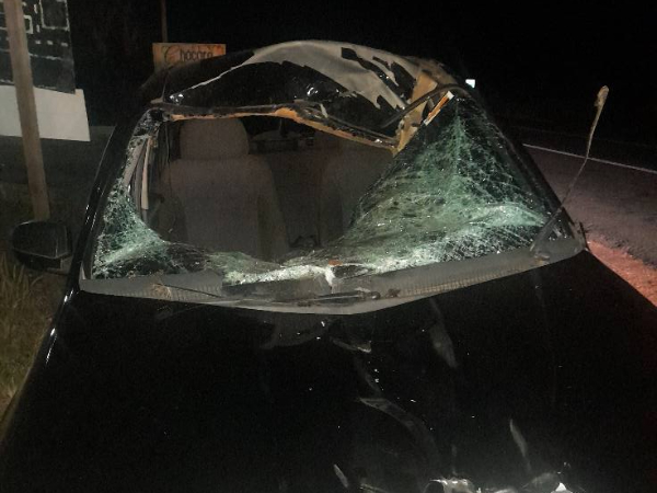 Um vídeo registrado por Paulo Cruz mostra como ficou o veículo após a colisão contra os animais na pista.