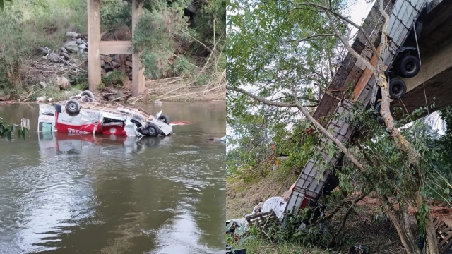 Nas imagens é possível ver que as viaturas ficaram submersas no rio. A carreta do primeiro acidente ficou pendurada na ponte, enquanto a envolvida no segundo não saiu da pista. Neste segundo, havia duas pessoas. Não há informações sobre o estado de saúde delas.