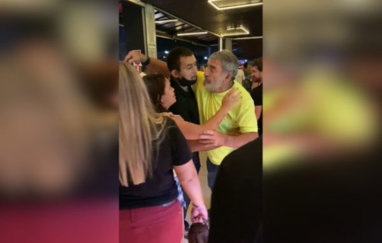 No vídeo, o parlamentar aparece de blusa amarela, aparentemente muito nervoso, batendo boca com as pessoas que estavam no local e sendo contido por seguranças.
