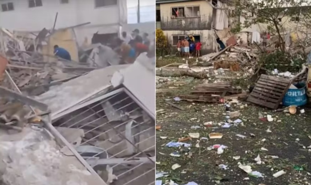 O prédio tinha quatro apartamentos no térreo e outros quatro no primeiro andar. O local ficou completamente destruído, com escombros e móveis retorcidos espalhados pelas ruas próximas.