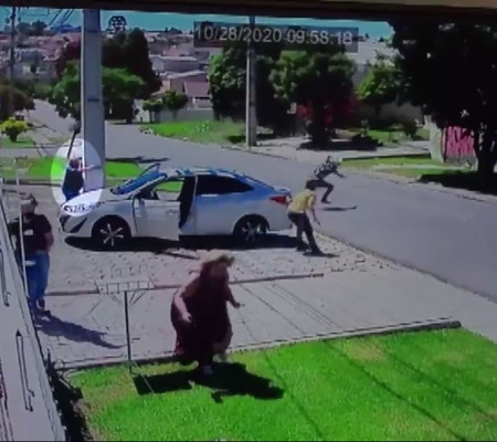 Um homem foi preso depois de reagir a um assalto e matar um dos suspeitos em Curitiba, na quarta-feira (28), de acordo com a Polícia Civil. Uma câmera de segurança registrou a ação. Nas imagens, a família vítima do assalto aparece junto a um carro, em frente a uma casa. Na sequência, os dois assaltantes se aproximam. Segundo a polícia, um deles estava armado.