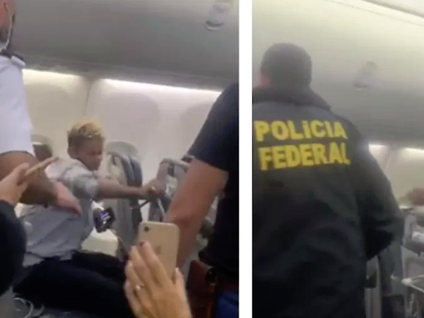 Nas imagens, é possível ver que já não havia nenhum outro passageiro sentado ao seu lado quando a confusão começa. Visivelmente alterado, ela passa a chutar com força as poltronas e o equipamento dobrável usado para refeições. Em um segundo trecho, o homem começa a gritar com um policial federal, identificado com o colete da corporação. "Vagabundo", grita uma passageira, incomodada com a situação. "Abaixa essa bola, a polícia chegou", começou a berrar o policial, na tentativa de fazer com que o homem parasse de gritar.