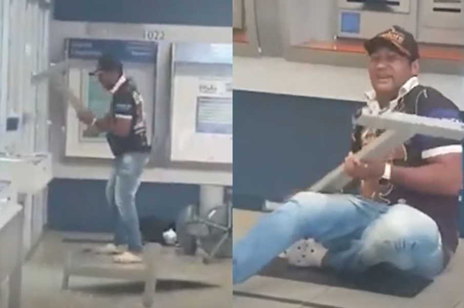 De acordo com a Polícia Militar (PM), testemunhas relataram que o homem destruiu caixas eletrônicos, quebrou balcões e danificou os vidros que dividem a entrada da agência e a área interna com as mesas de atendimento.