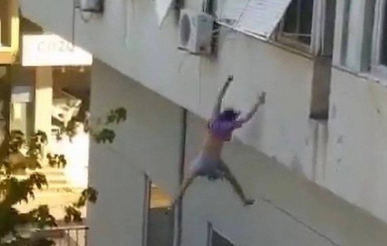Imagens impressionantes mostraram o momento em que Sirin N. E. se jogou de uma janela a uma altura de 10 metros (equivalente ao terceiro andar de um prédio) .