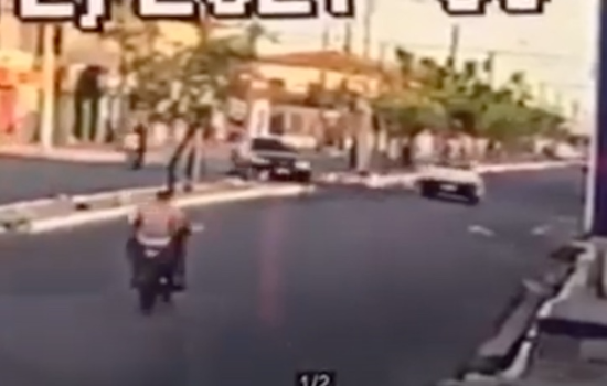 Na gravação é possível ver o momento que o motorista do carro realiza o retorno na avenida e tenta entrar na via antes das vítimas na motocicleta, o que acaba ocasionando a batida. Com o impacto, o piloto da motocicleta bateu a cabeça na calçada.