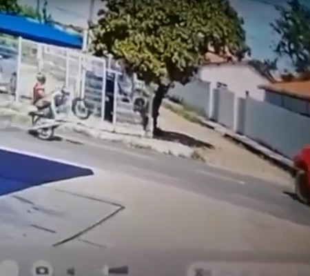 Imagens de câmeras de segurança registraram o exato momento em que o jovem Rodrigo Pereira de Oliveira, de 23 anos, empinava sua motocicleta quando veio a colidir na lateral de um caminhão caçamba próximo ao clube da Associação Atlética do Banco do Brasil (AABB), em Floriano, município da região Sul do Piauí.