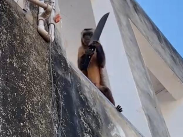 Um macaco-prego garantiu seus quinze minutos de fama após ser flagrado causando transtornos a moradores na cidade de Corrente, situada ao Sul do Piauí. Um vídeo feito por um morador mostra o espertinho “amolando” uma faca de cozinha sobre o muro de um centro comercial do município.