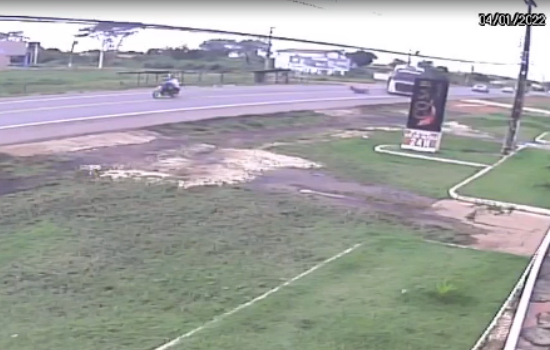 No vídeo, é possível ver que o ciclista está em uma avenida lateral quando em um determinado momento tenta atravessar a rodovia e é atingido pelo veículo.