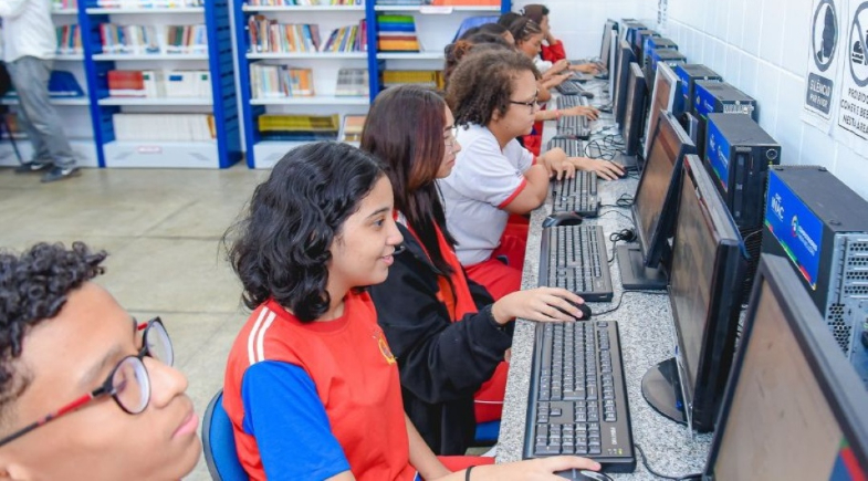 No plano mais diretamente conectado ao cotidiano dos estudantes do Piauí, subiu 40,2 pontos percentuais (de 26,5% para 66,7%) o número de escolas públicas com internet disponível para atividades de ensino e aprendizagem entre 2019 e 2025, e cresceu 28 pontos percentuais (de 37,6% para 65,6%) o número de escolas com computadores disponíveis para alunos (desktops ou laptops) entre 2015 e 2025.
