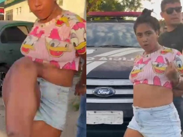 Uma mulher indentificada como Nadi Emanuelle, tentou agredir com chutes e fez gestos obscenos para o jornalista da Rede Meio Norte, Ivan Lima. O ato aconteceu no momento em que a presa foi filmada chegando à Central de Flagrantes. Segundo informações apuradas pelo Meionorte.com, ela é acusada de participar do sequestro e morte de Mateus Salgado em dezembro de 2021, na cidade de Timon. Na ocasião, a acusada fugiu para Teresina onde foi presa na manhã desta quinta-feira (25).