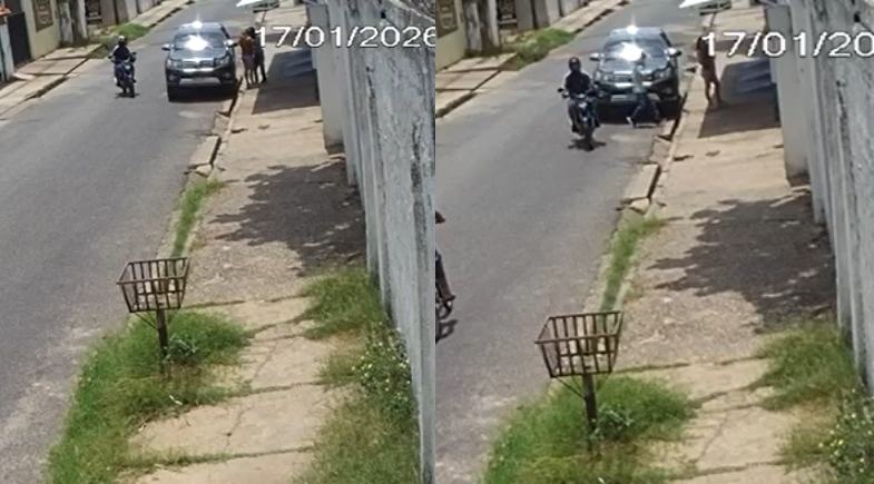 O assalto foi registrado por uma câmera de monitoramento. Eram 12h19 quando a advogada chegava a um salão de beleza e foi abordada pelos suspeitos.