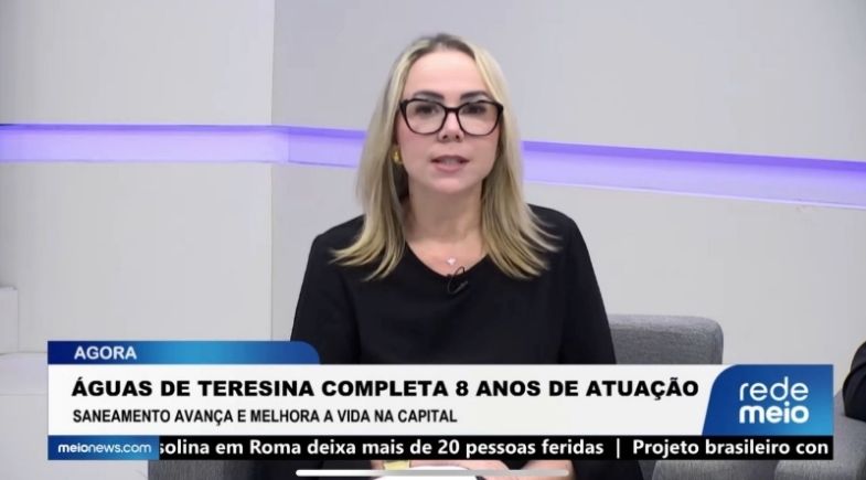 A empresa Águas de Teresina completa, nesta segunda-feira (08), oito anos de atuação na capital do Piauí. Para marcar a data, a presidente da concessionária, Carolina Serafim, participou do programa Agora - Jogo do Poder da Rede Meio, nesta sexta-feira (04), e destacou os avanços conquistados ao longo desse período.