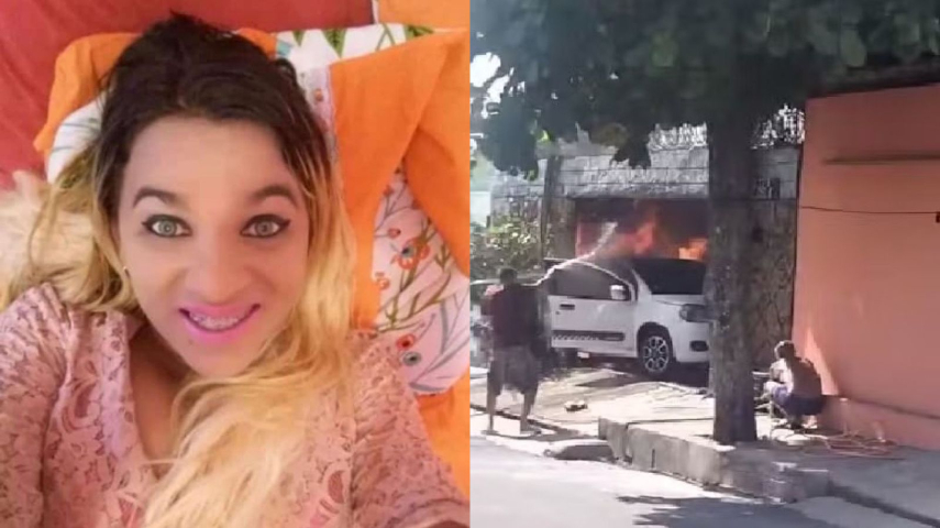 Kelly Sousa sofreu graves queimaduras após um carro pegar fogo na garagem da residência em que ela morava com o marido, identificado apenas como Cleiton.