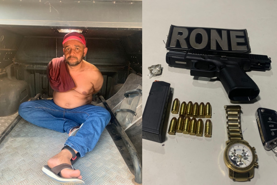 O suspeito, identificado apenas como Luciano, tentou fugir do local ao perceber a aproximação da viatura, mas foi interceptado pelos agentes. Durante vistoria veicular, foi encontrado uma pistola marca Glock, um carregador, 12 munições, trouxinhas de entorpecentes, itens roubados e cerca de R$ 12,00 em espécie.