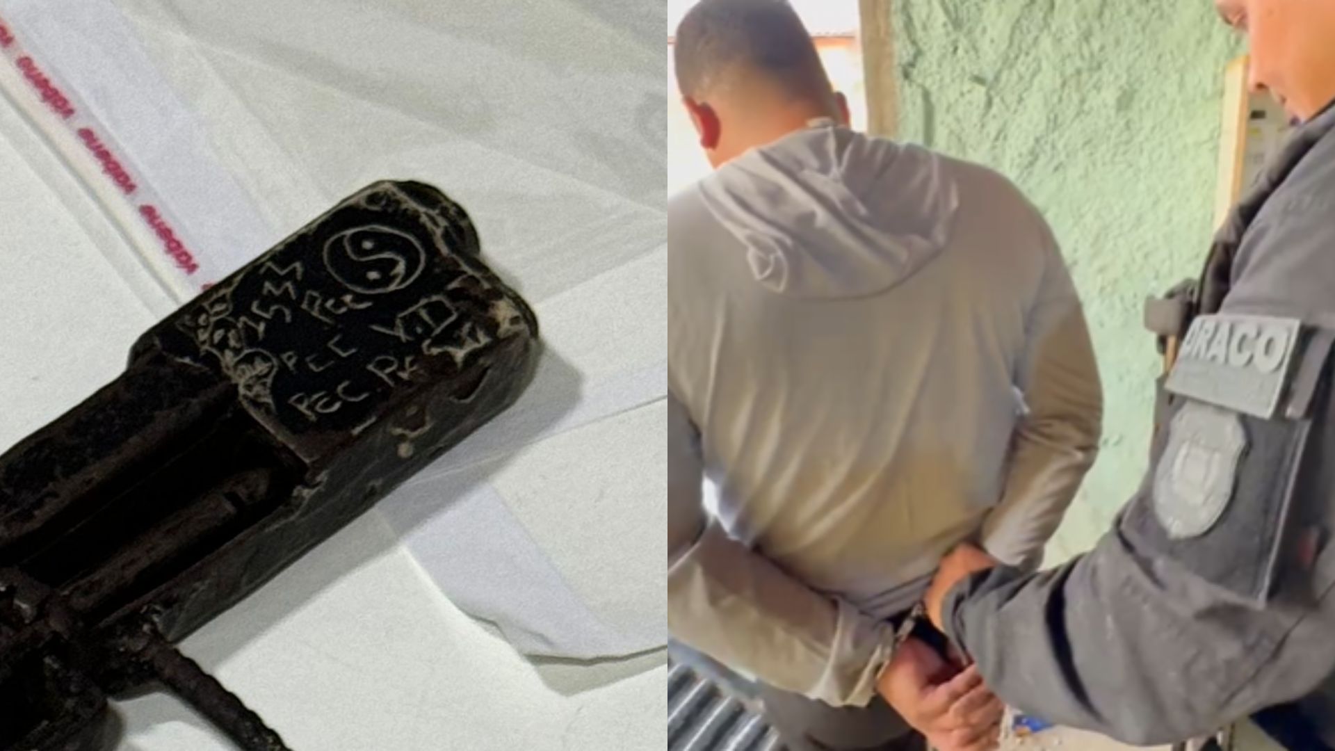 "Em uma das armas, encontramos várias gravações, incluindo símbolos que fazem alusão a uma facção criminosa, além do próprio nome da facção gravado na arma", informou.