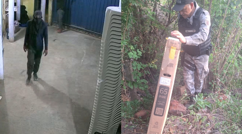Levaram 14 televisões, sendo 9 de 65 polegadas e 5 de 55. Começamos a trabalhar nessa investigação e ontem à tarde, recebemos informações de alguns elementos ali na Vila do Pedro Bauzi, e fomos com a polícia militar, e lá dentro de um mato, a gente achou duas TVs que estavam dentro desse mato, disse o investigador Paulo Alexandre.