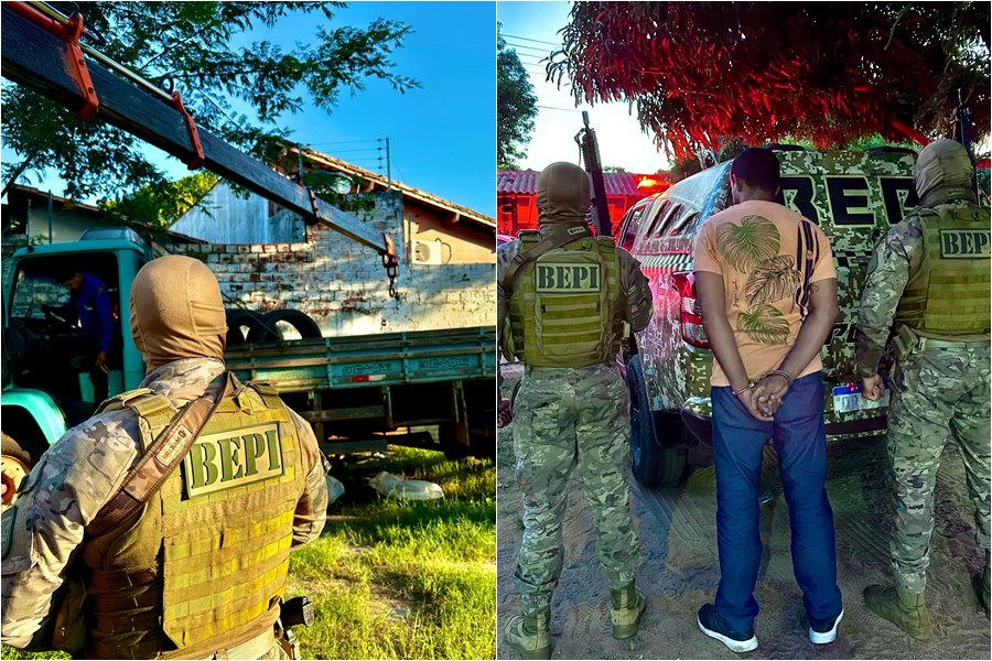 O Batalhão Especial de Policiamento do Interior (BEPI), nesta terça-feira (8) um homem de 46 anos, identificado pelas iniciais R.B.R, por receptação de veículo roubado, no bairro São Francisco 1, em Timon (MA). A ação resultou na recuperação de um caminhão Mercedes-Benz verde, que havia sido furtado em fevereiro deste ano na cidade de Matias Olímpio (PI), com um compressor de ar para escavação de poço tubular.