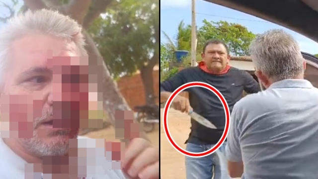 Eu trabalho na atividade jornalística aqui na cidade e estava fiscalizando uma obra por volta das 15h, no momento em que houve a tentativa de homicídio. No momento em que eu parei o carro e fui descer, ele veio para cima de mim com uma faca, e eu comecei a me desvencilhar e pedir para que ele parasse. Então, ele começou a me esmurrar, foram muitos murros que chegou a cortar meu rosto”, afirmou o blogueiro.