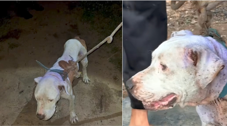 As equipes de resgate encontraram o cão em um estado crítico, de extrema vulnerabilidade, com fome e sede. O animal também apresentou vários ferimentos na região da orelha.