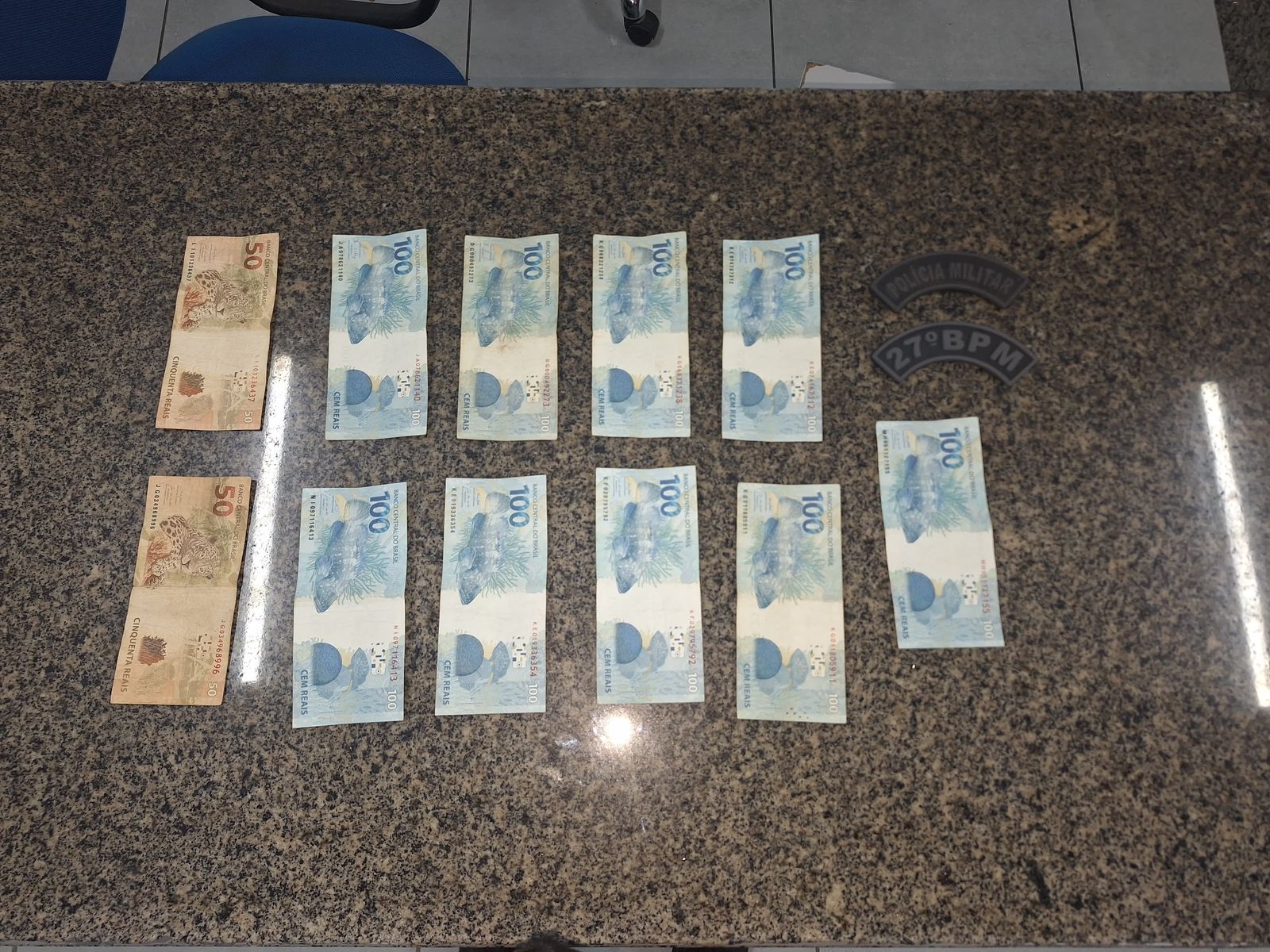 Policiais militares do 27º BPM confirmaram a situação e recolheram a quantia de R$ 1.000,00, sendo nove cédulas de R$ 100,00 e duas de R$ 50,00. O caso foi informado ao diretor da rodoviária e registrado em boletim de ocorrência.