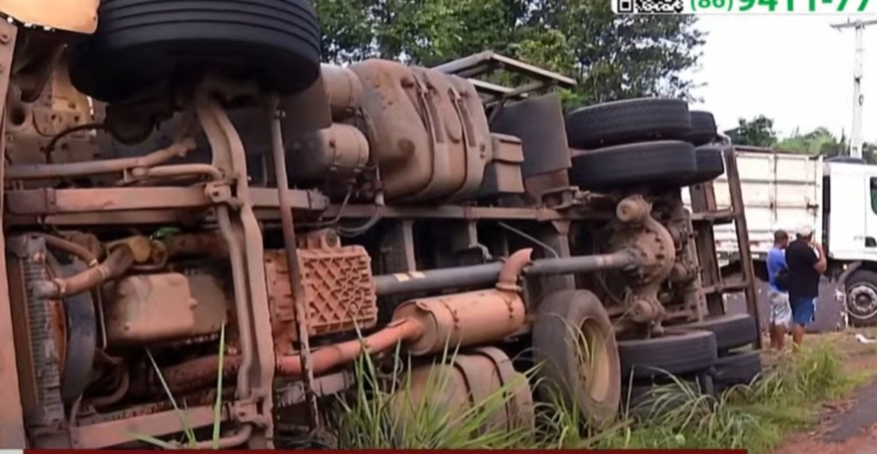 Um caminhão tombou, nesta segunda-feira (7) em uma curva na PI-112, que liga Teresina a União. O trecho, no km 29 da rodovia piauiense, é considerado perigoso pelas curvas sinuosas.