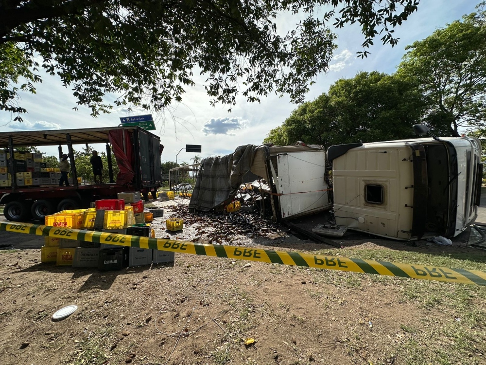 Um caminhão carregado com cervejas tombou na manhã da última quinta-feira (26) na rotatória do Conjunto Tancredo Neves, localizado na BR-343, na zona Sudeste de Teresina. Mais de 24 horas após o acidente, o veículo ainda permanece no local, causando transtornos no trânsito.