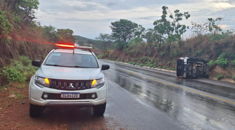 No local, a polícia encontrou o veículo tombado às margens da rodovia. O condutor, identificado como A. T. da C., relatou que seguia de Barreirinhas-BA para Gilbués acompanhado da esposa, A. C. M. C., e de seu filho, J. A. C., e de outra pessoa que não se encontrava mais no local do acidente.