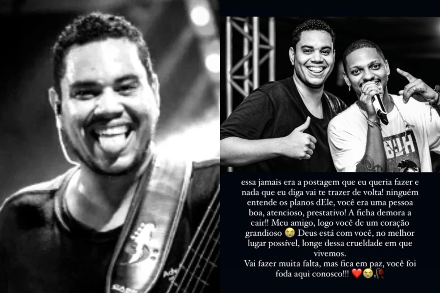“Essa jamais era a postagem que eu queria fazer e nada que eu diga vai te trazer de volta! Ninguém entende os planos dEle, você era uma pessoa boa, atenciosa, prestativa! A ficha demora a cair!! Meu amigo, logo você de um coração grandioso Deus está com você, no melhor lugar possível, longe dessa crueldade em que vivemos. Vai fazer muita falta, mas fica em paz, você foi foda aqui conosco”, diz a mensagem do cantor Junior Masca.