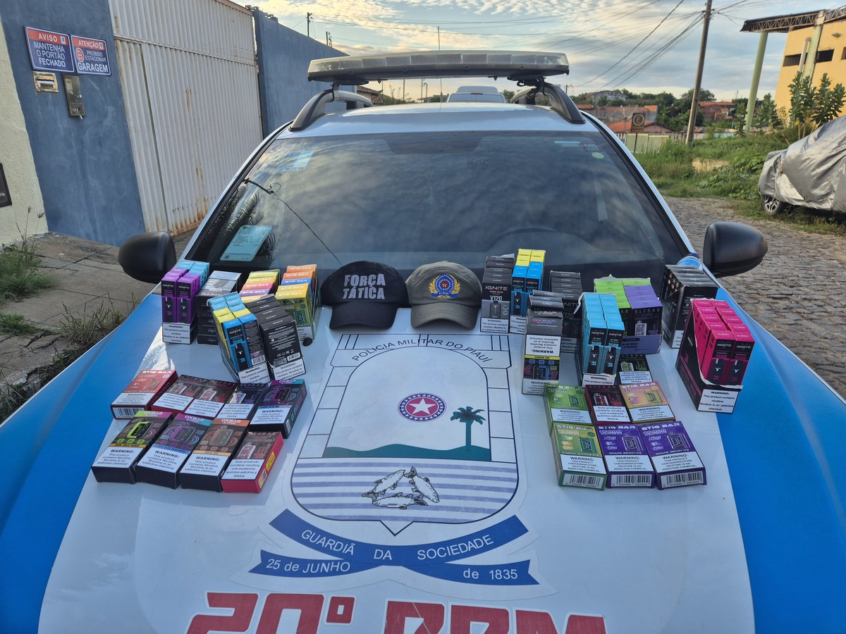 Uma carga de cigarros eletrônicos de diversas marcas, sem documentação fiscal, foi apreendida pela Polícia Militar do Piauí na tarde de quinta-feira (6) durante uma operação de fiscalização na Avenida Transamazônica, em Paulistana. A apreensão foi realizada pelo 20º Batalhão e configura crime de contrabando.