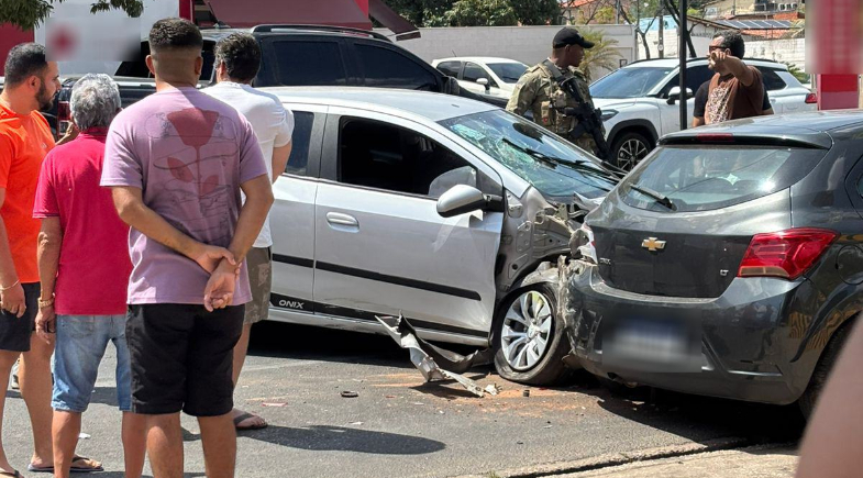 De acordo com as informações, os três veículos trafegavam no mesmo sentido pela Avenida Barão de Castelo Branco quando um deles tentou realizar uma ultrapassagem, provocando as colisões. Com o impacto, um dos carros chegou a subir na calçada de um posto de combustível.