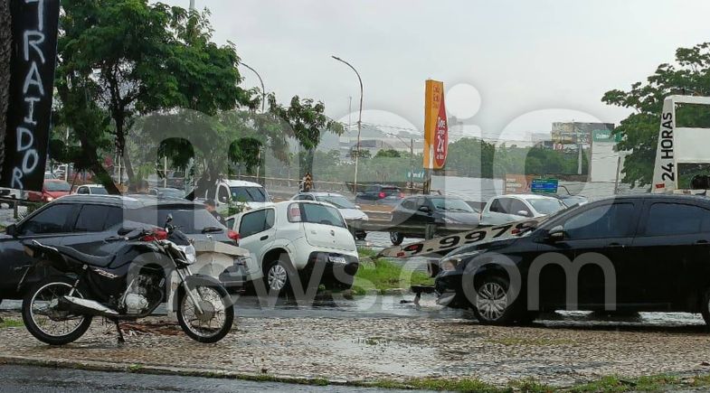 Um carro caiu em uma vala na saída da ponte Juscelino Kubitschek, na Avenida Frei Serafim, em Teresina, na manhã desta quinta-feira (2).