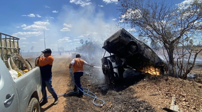 Conforme a Defesa Civil Municipal, o acidente resultou apenas em danos materiais. As chamas chegaram a atingir a vegetação seca às margens da via, mas o incêndio foi rapidamente controlado no local.