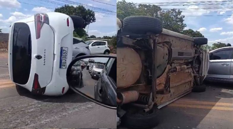 Dois carros colidiram e um deles capotou na tarde desta sexta-feira (9), na BR-343, nas proximidades do bairro Dirceu, zona Sudeste de Teresina. A Polícia Rodoviária Federal (PRF) esteve no local para atender a ocorrência.