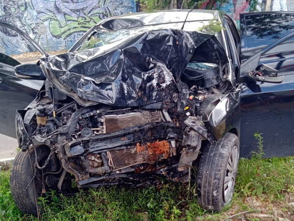 O carro ficou com a dianteira bastante avariada. As causas do acidente serão investigadas pela perícia de trânsito, mas segundo informações repassadas à Polícia Militar, um dos pneus do carro teria estourado e o condutor acabou perdendo o controle.