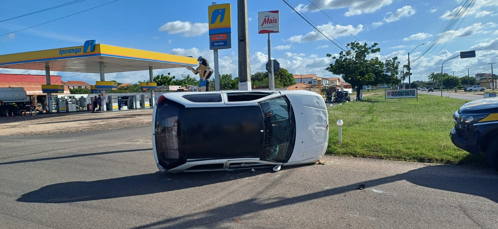 Carro tomba após desrespeitar parada obrigatória e colidir com Saveiro em Parnaíba