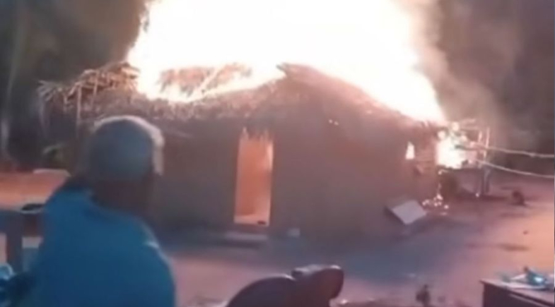 Casa de taipa pega fogo durante produção de azeite de coco em União; família pede ajuda