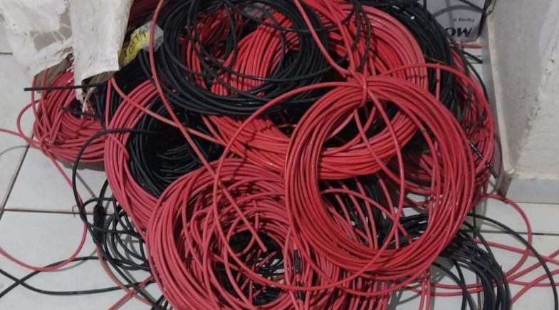 Cerca de 50 kg de fios furtados foram apreendidos na tarde dessa quinta-feira (2), e um suspeito foi preso em Oeiras, no Sul do Piauí. A ação ocorreu após denúncia de furto de cabos nas proximidades de um colégio, no bairro Uberaba I.